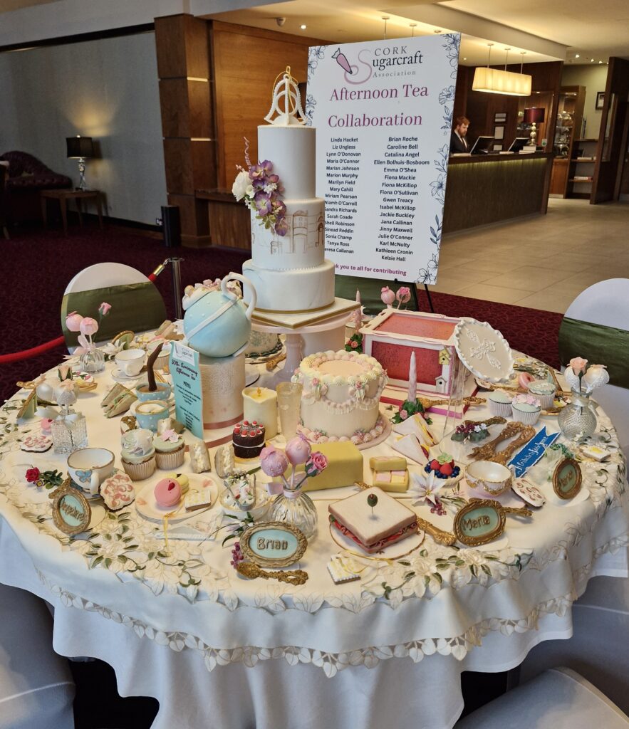 I wanted to put together 3 collaborations, An Afternoon Tea, to celebrate 30 years of Cork Sugarcraft, A Friendship bench for us to gather and take pictures with our cake family, and a huge birthday cake to celebrate the milestone in Cork Sugarcraft.